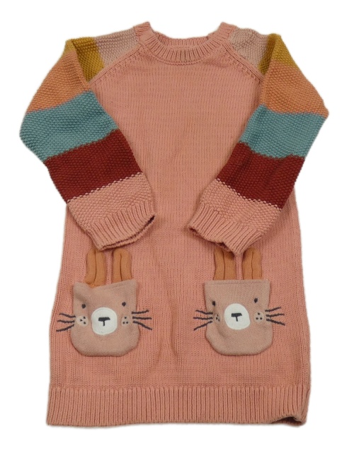 Staroružové svetrové šaty s farebnymi rukávy a králikmi Next