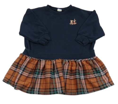 Tmavomodré teplákové šaty s medvísdkem a kostkovanou sukní Next