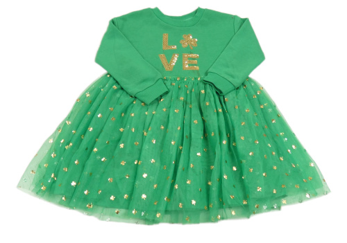 Zelené teplákové šaty s tylovou sukní a trojlístky Primark