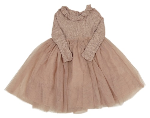 Staroružové melírované rebrované úpletovo/tylové šaty so trblietkami a volánikom PRIMARK