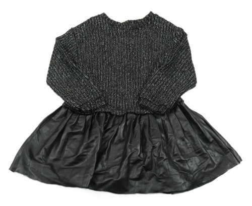 Čierno-strieborné melírované rebrované úpletovo/koženkové šaty Zara