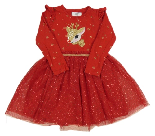 Červené šaty so sobom s flitre a zlatými hviezdičkami a volániky a tylem s bodkami PRIMARK