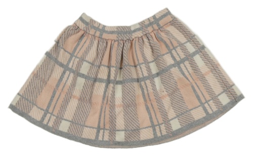 Pudrovo-smetanovo-sivá kockovaná vlnená sukňa
