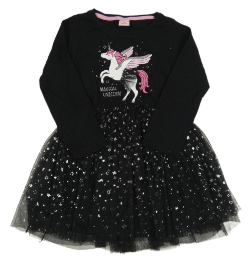 Čierne bavlněno/tylové šaty s jednorožcom Kiki&Koko