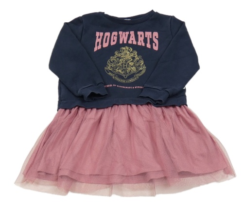 Tmavomodro-ružové teplákové šaty s erbem Harry Potter a tylovou sukní H&M