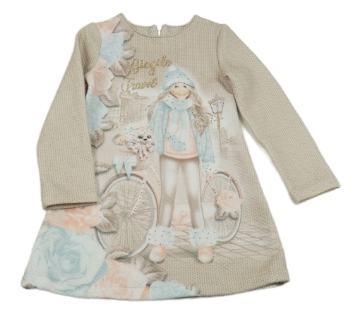 Béžovo-smotanové vzorované šaty s dievčatkom