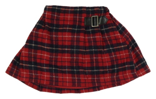 Červeno-tmavomodro-pudrová kockovaná vlnená sukňa s přezkou Next