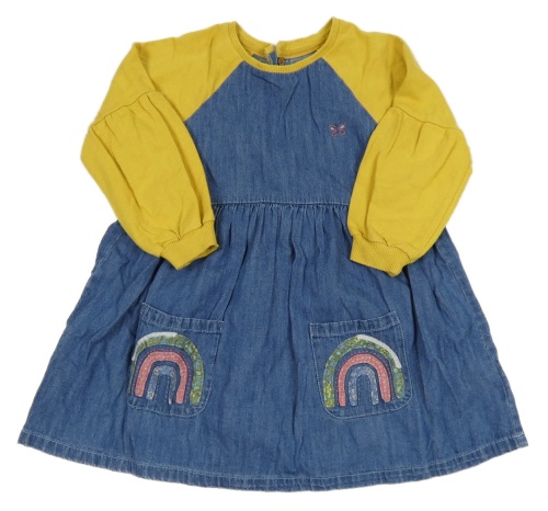 Modro-horčicové riflovo/teplákové šaty s duhami Next