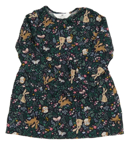 Tmavomodré kvietkovane bavlnené šaty so zvieratkami H&M