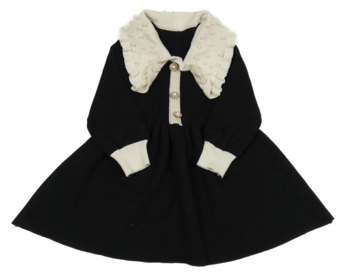 Čierno-biele úpletové šaty s gombíky a golierikom s perlami