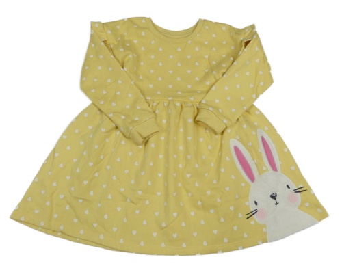 Žlté teplákové šaty so zajačikom a srdiečkami a volánikmi St. Bernard