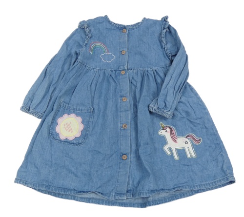 Svetlomodré rifľové prepínaci šaty s jednorožcom a dúhou F&F