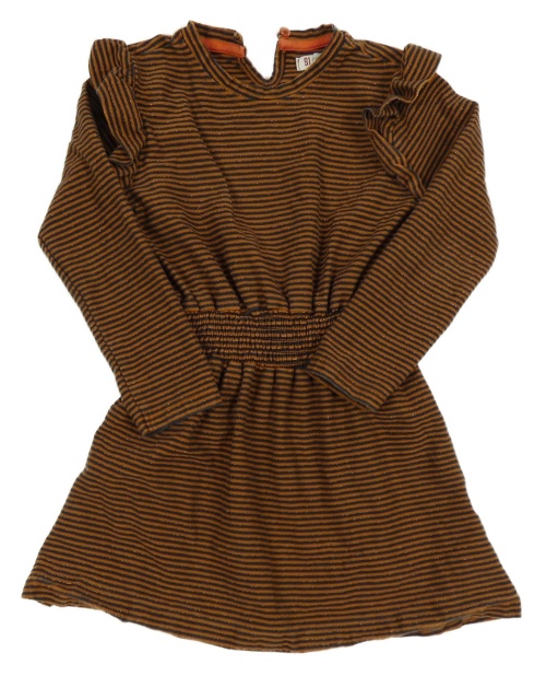 Hnedo-tmavosivé pruhované šaty s volánikmi Noppies