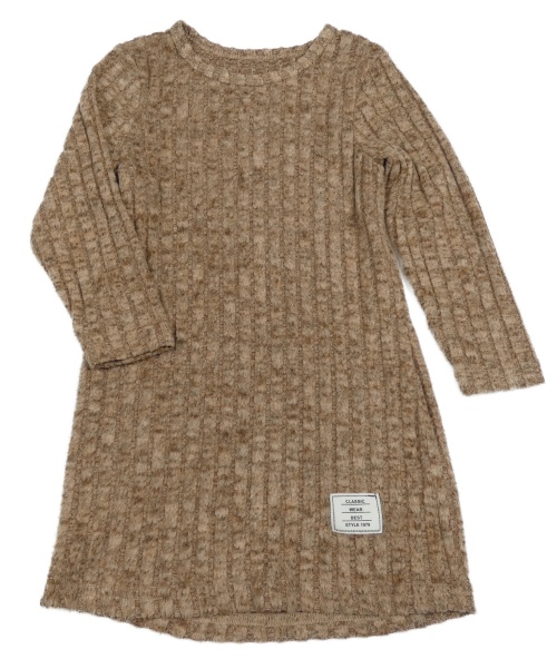 Hnedé melírované pletené rebrované šaty s nášivkou