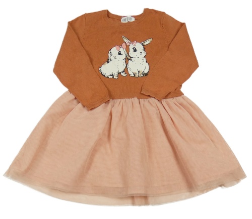 Oranžovo-ružové pleteno/tylové šaty s králíčky H&M