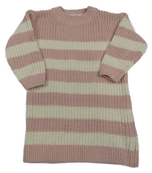 Svetloružová -smotanové pruhované rebrované žinylkové svetrové šaty H&M