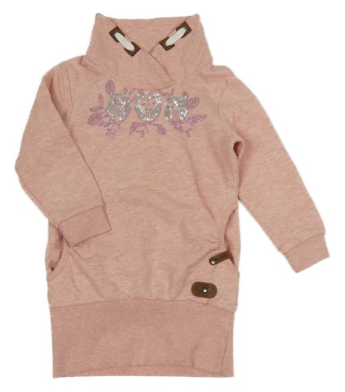 Svetloružová mikinová tunika so sovami z flitrů a komínovým golierom Topolino