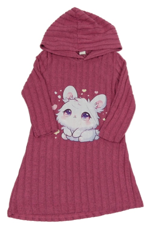 Tmavoružové úpletové rebrované šaty s mačkou a kapucňou