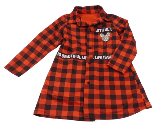 Červeno-čierne kockované prepínaci šaty s Minnie z kamínků