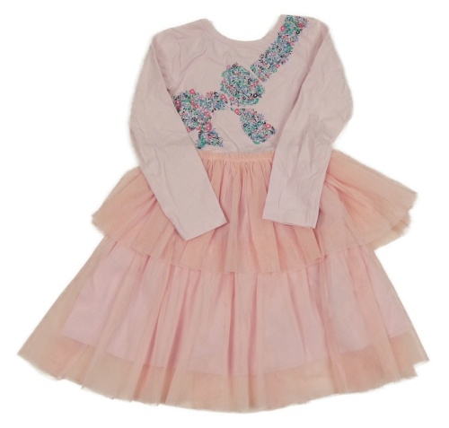 Svetloružové šaty s farebnou mašlou a tylem