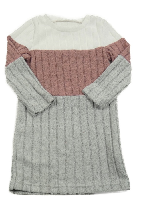 Bielo-ružovo-sivé úpletové rebrované šaty Shein
