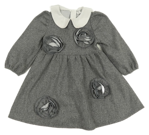 Sivé melírované šaty s 3D kvety a golierikom Shein