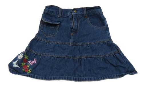 Tmavomodrá rifľová sukňa s kvetmi