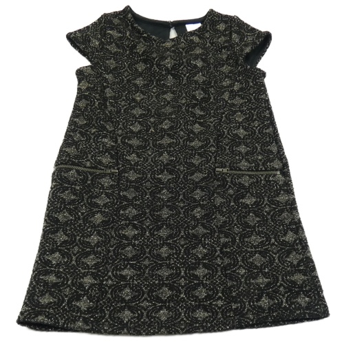 polyester + viskóza + metalická vlákna + elastan, uvnitř černá bavlněná spodnička, falešné kapsy