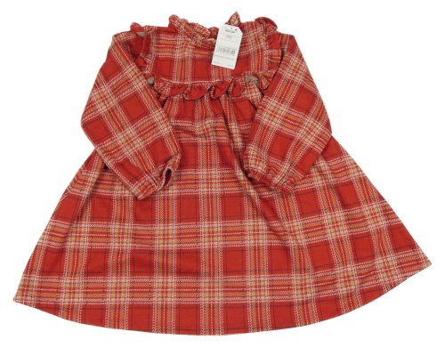 Nové - červeno-béžovo-čierno-biele kockované vzorované úpletové šaty s volánikmi Next