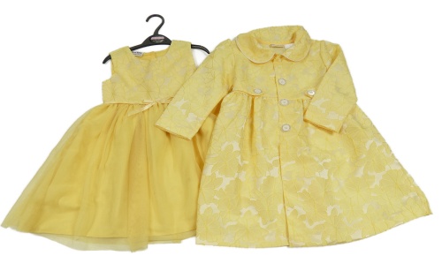 2set - Žlté kvetované šaty s tylovou sukní + Bílo-žlutý květovaný lehký kabátek