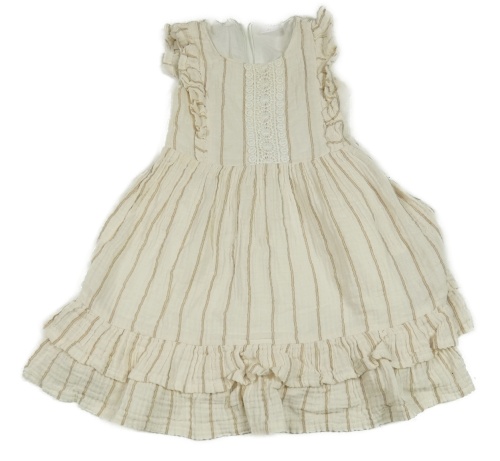 Smetanovo-béžové pruhované šaty s volánikmi