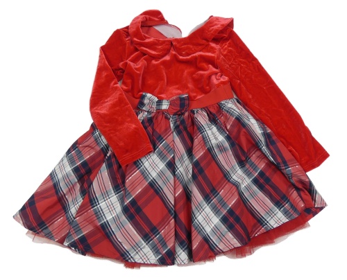 Červeno-kockované sametovo/šusťákové šaty s mašlou Dunnes