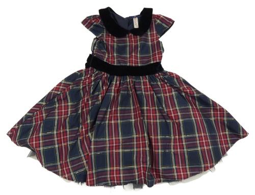 Tmavomodro-červeno-farebné kockované šaty s golierikom St. Bernard