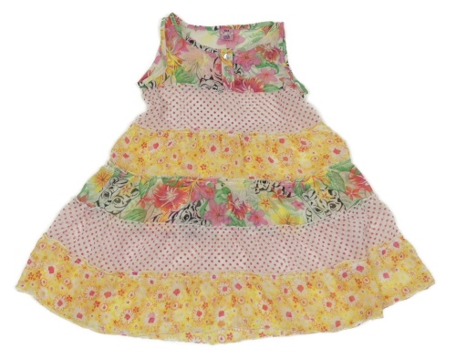Bielo-žlté žoržetové průsvitné šaty s bodkami a kvietkami Kiki&Koko