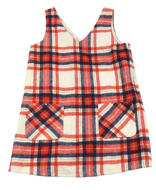 Smetanovo-červeno-tmavomodré kockované vlnené šaty F&F