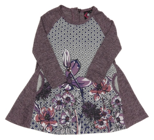 Fialovo-sivé úpletové šaty s kvetinami