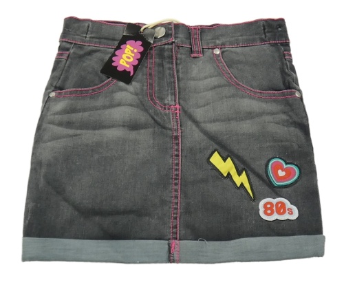 Nové - Sivá ľahká rifľová sukňa s nášivkami