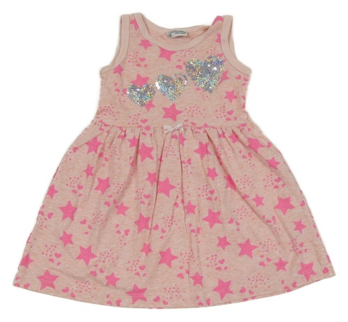 Ružové melírované bavlnené šaty so srdíčky z flitrů a hviezdami