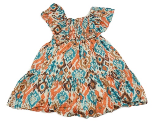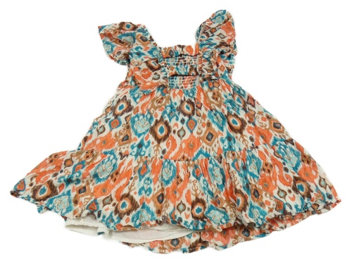 Béžovo-farebné vzorované trblietavé šaty s volánikmi C&A