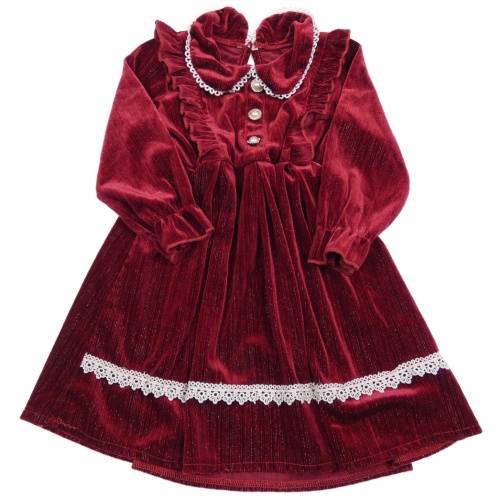 Vínové zamatové trblietavé šaty s golierikom a volánikmi