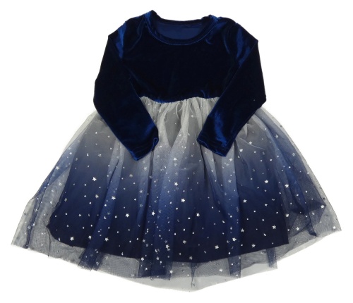 Safírovo-bielo-tmavomodré sametovo/tylové šaty s hviezdičkami