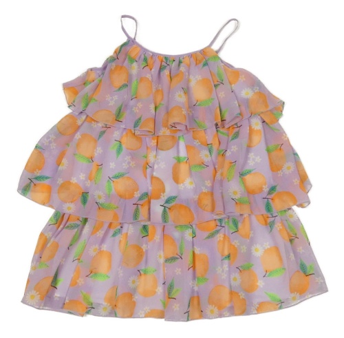 Lila šifónové vrstvené šaty s pomeranči H&M