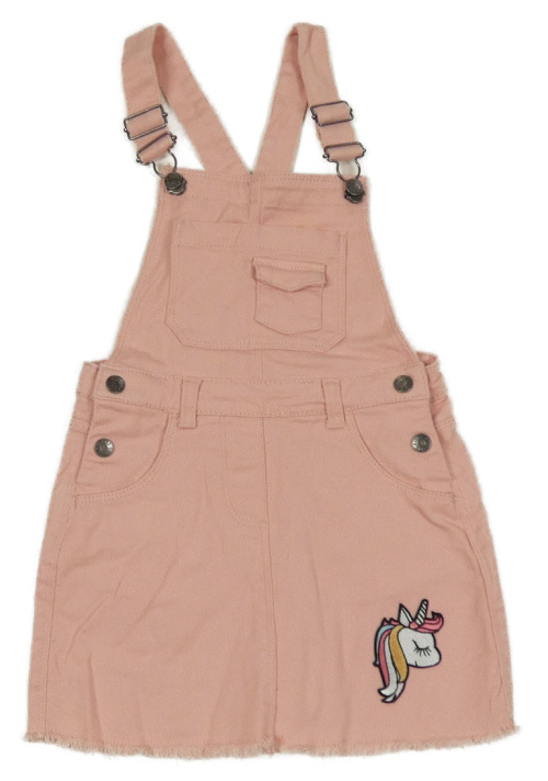 Svetloružová rifľová na traká sukňa s jednorožcom Lupilu