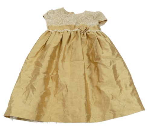 Zlaté slávnostné šaty s čipkou a šifonovým volánem