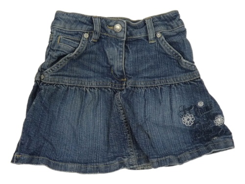 Modrá šisovaná chino rifľová sukňa s nápismi a kvetmi S. Oliver