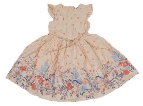 Svetloružové plátenné šaty s kvietkami a volánikmi a opaskom Topolino