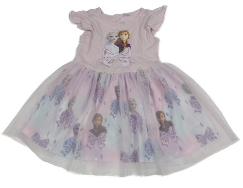 Svetloružové bavlnené šaty s tylovou sukní s Frozen a mašlou