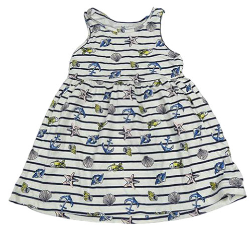 Bielo-tmavomodré pruhované bavlnené šaty s mušlemi Lupilu