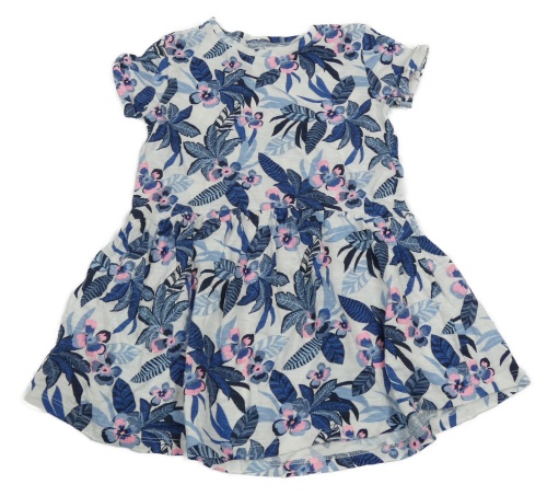 Bielo-tmavomodré šaty s listami Vertbaudet