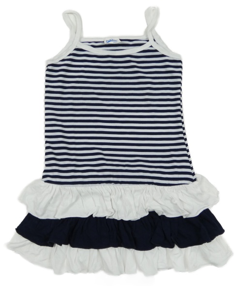 Modro-biele pruhované šaty s volány Printex